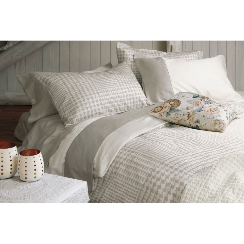 Double: duvet cover cm 250x260, bottom sheet cm 180x200x30, pillowcases cm 52x82 with the fixing system Twins®
